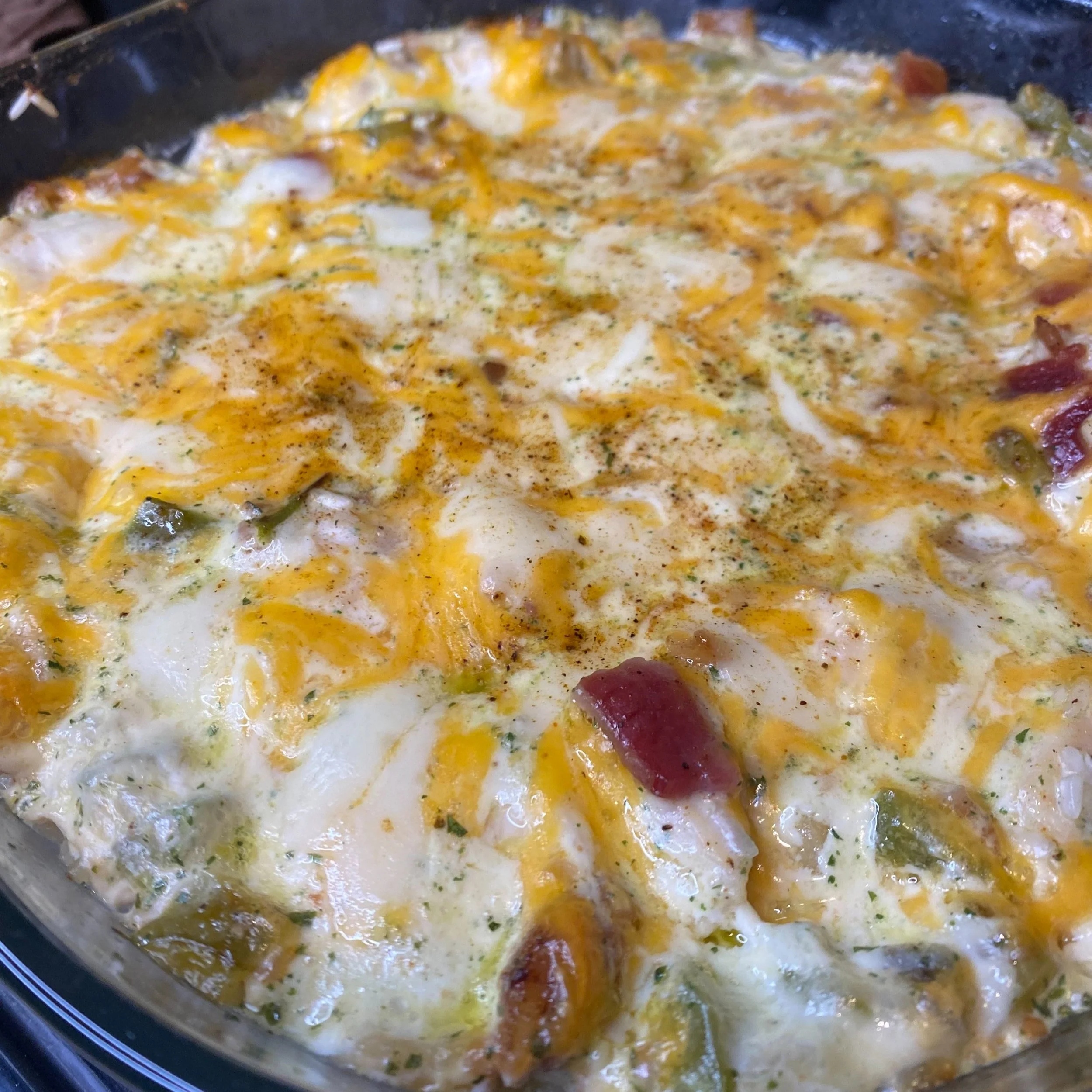 Place peppers on baking pan and cook for about 10 minutes per side, ensuring bacon is cooked and cheese is melted.